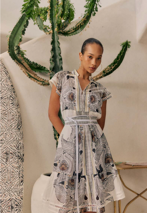 Malika Silk Cotton Lace Trim Flutter Sleeve Dress | Ivory Casablanca