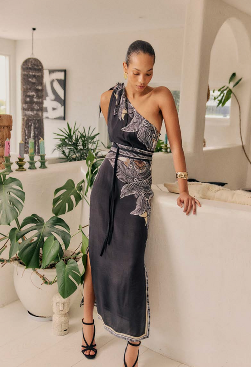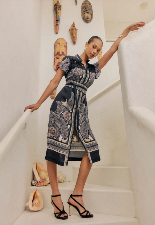 Maha Diamond Smock Yoke Viscose Faille Dress | Onyx Casablanca