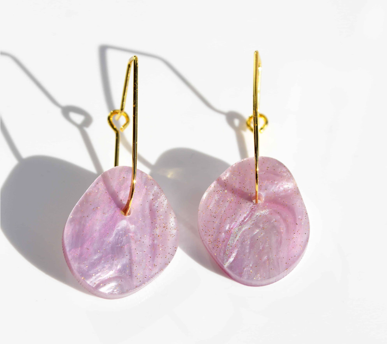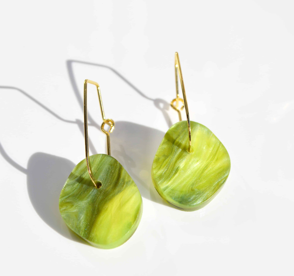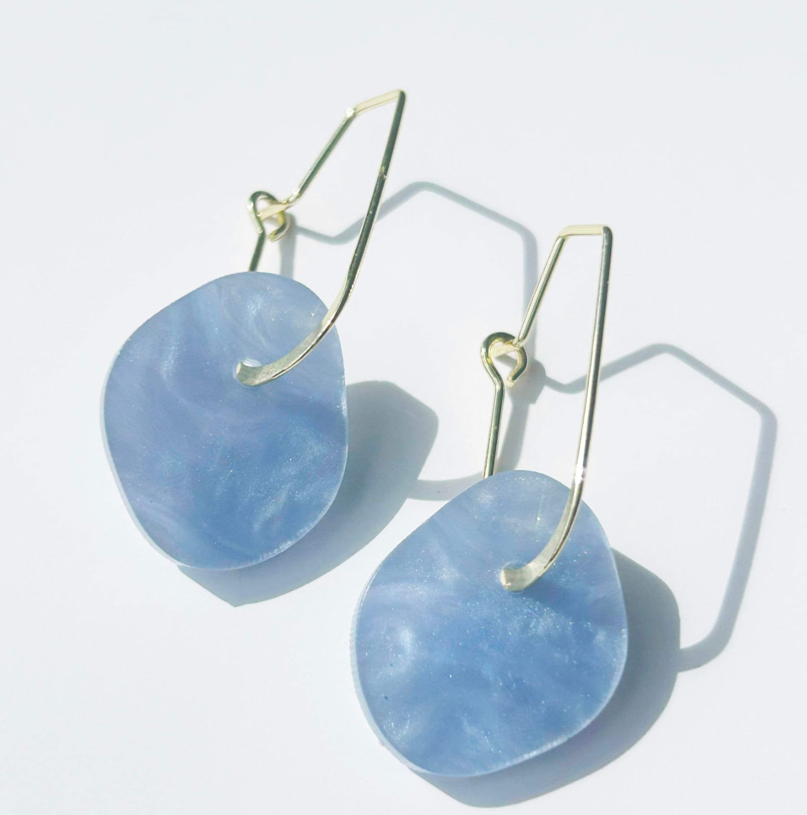 An organic shape aqua marbled acrylic and pretty gold oval hoop
