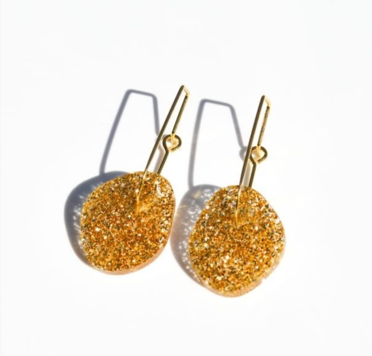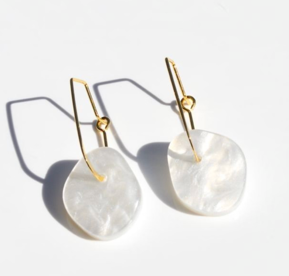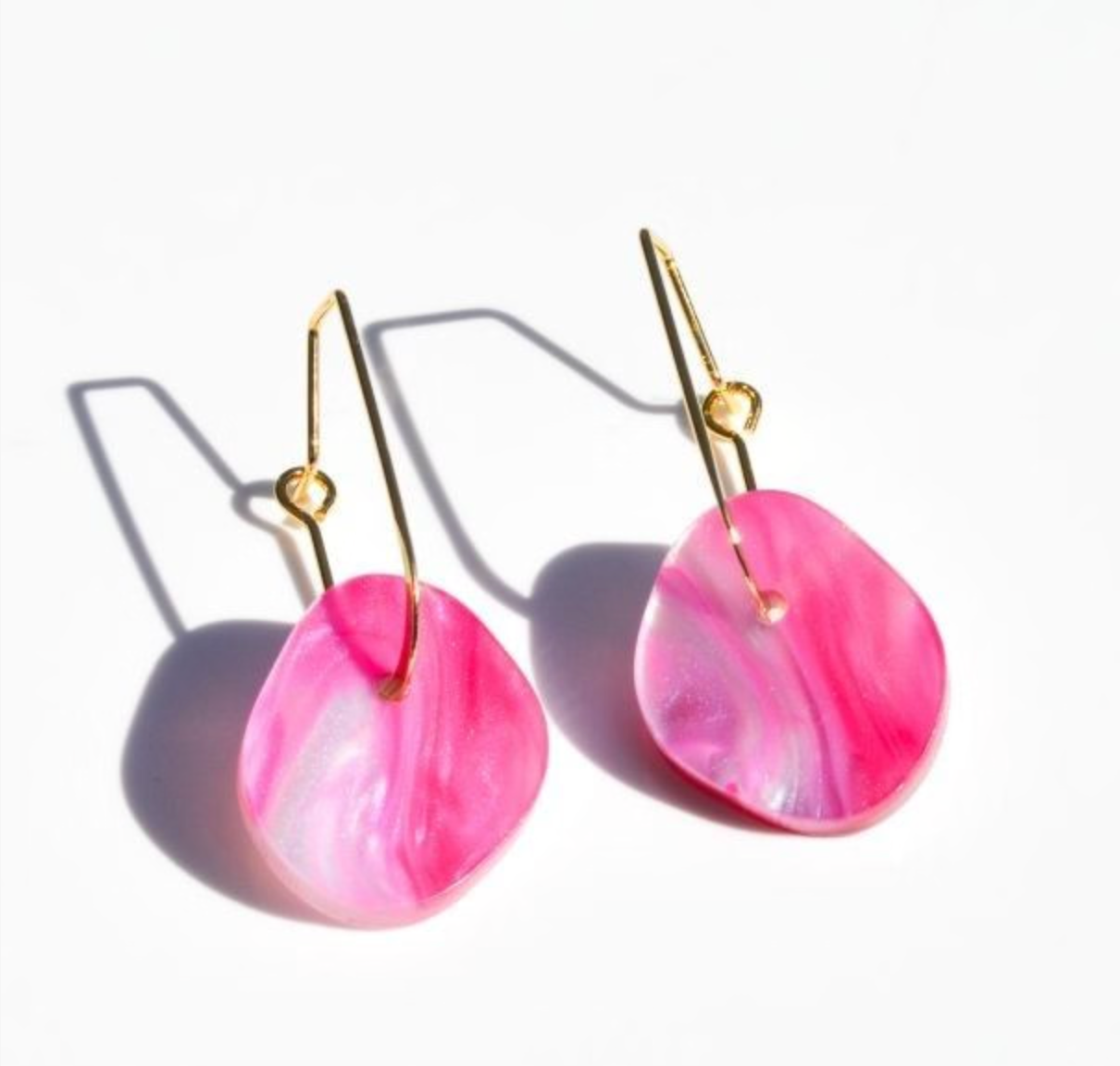 An organic shape aqua marbled acrylic and pretty gold oval hoop