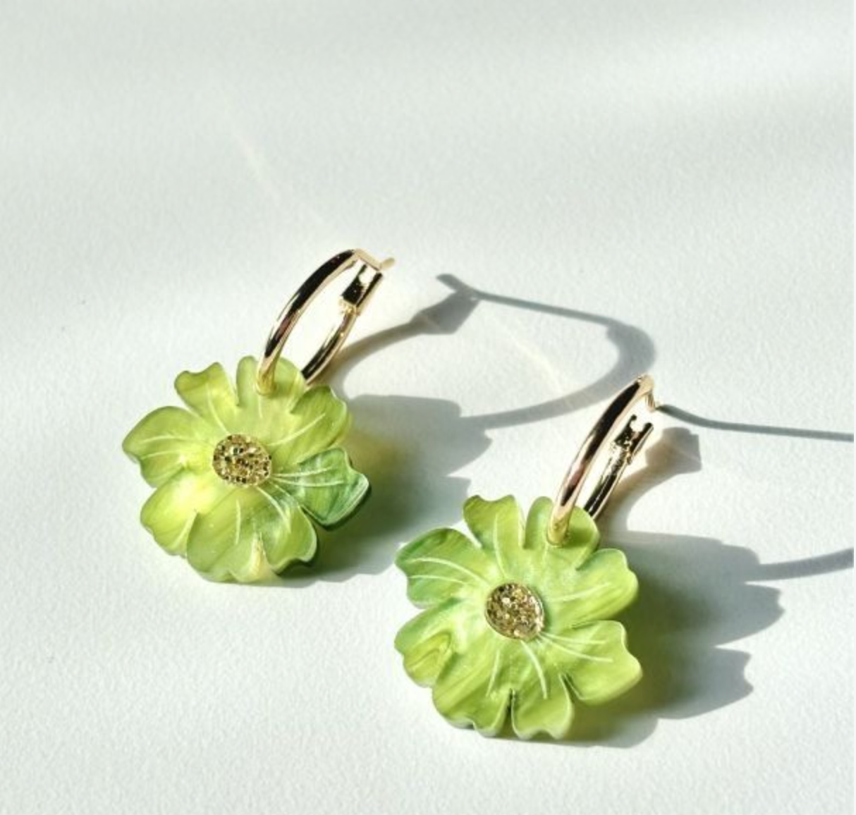 Sweet little flower earrings in a Pearl marble acrylic with gold glitter centre. Great size for everyday wear.