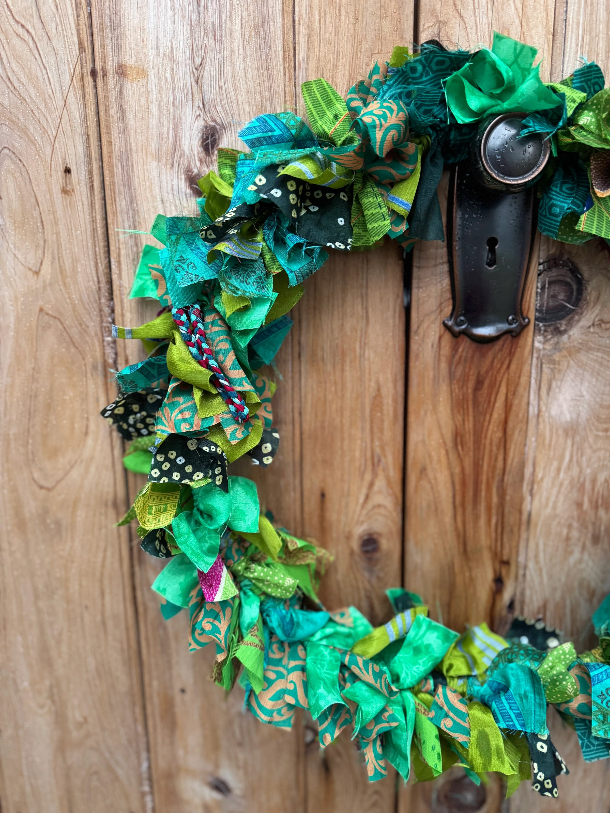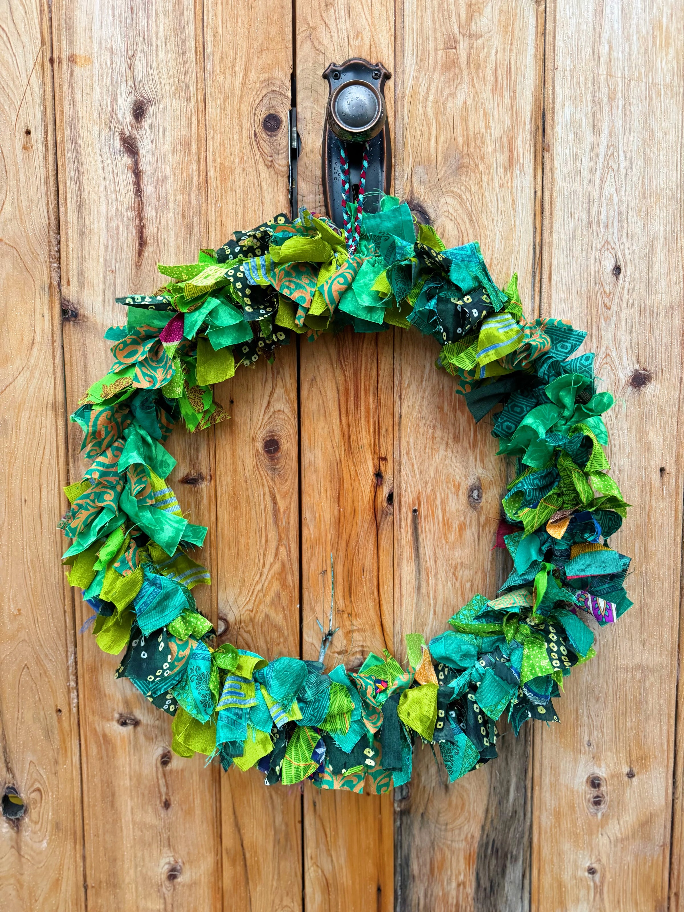 Vibrant Green Recycled Fabric Wreath