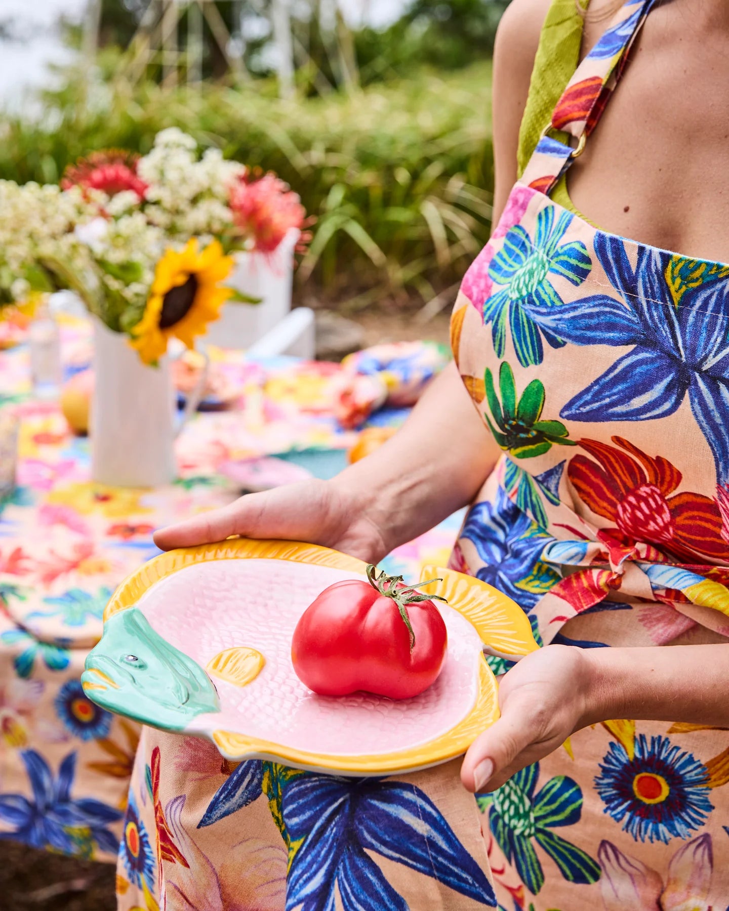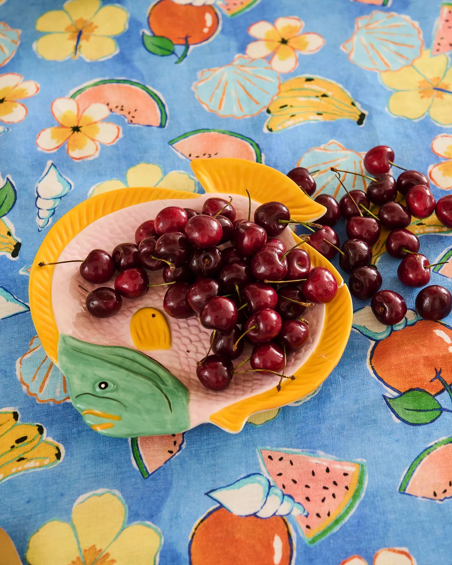 Bring the beach to your table! The Coral Bay Fish Serving Dish, in soft pink with a bold green face and sunny saffron fins, is ready to plate up prawns, tropical fruit, or any summery spread. With its playful shape and vibrant colours, this fish-shaped platter carries the carefree spirit of the seaside straight to your dining table.