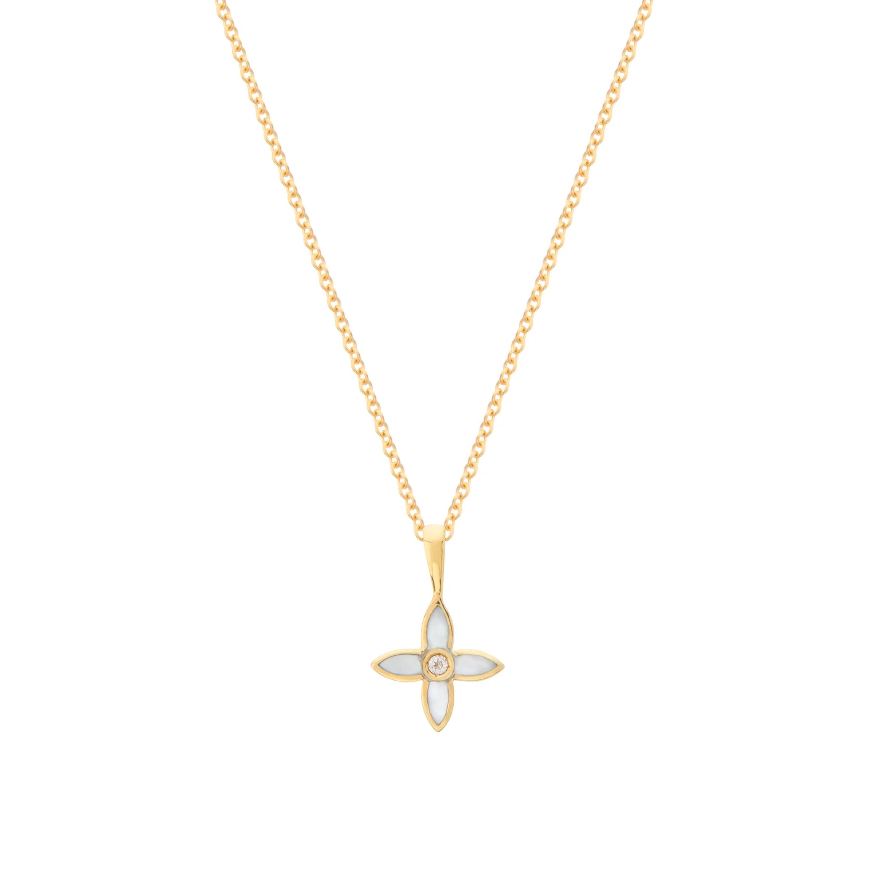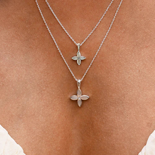 Desert Flower Charm with Necklace features Mother of Pearl and White Topaz details.