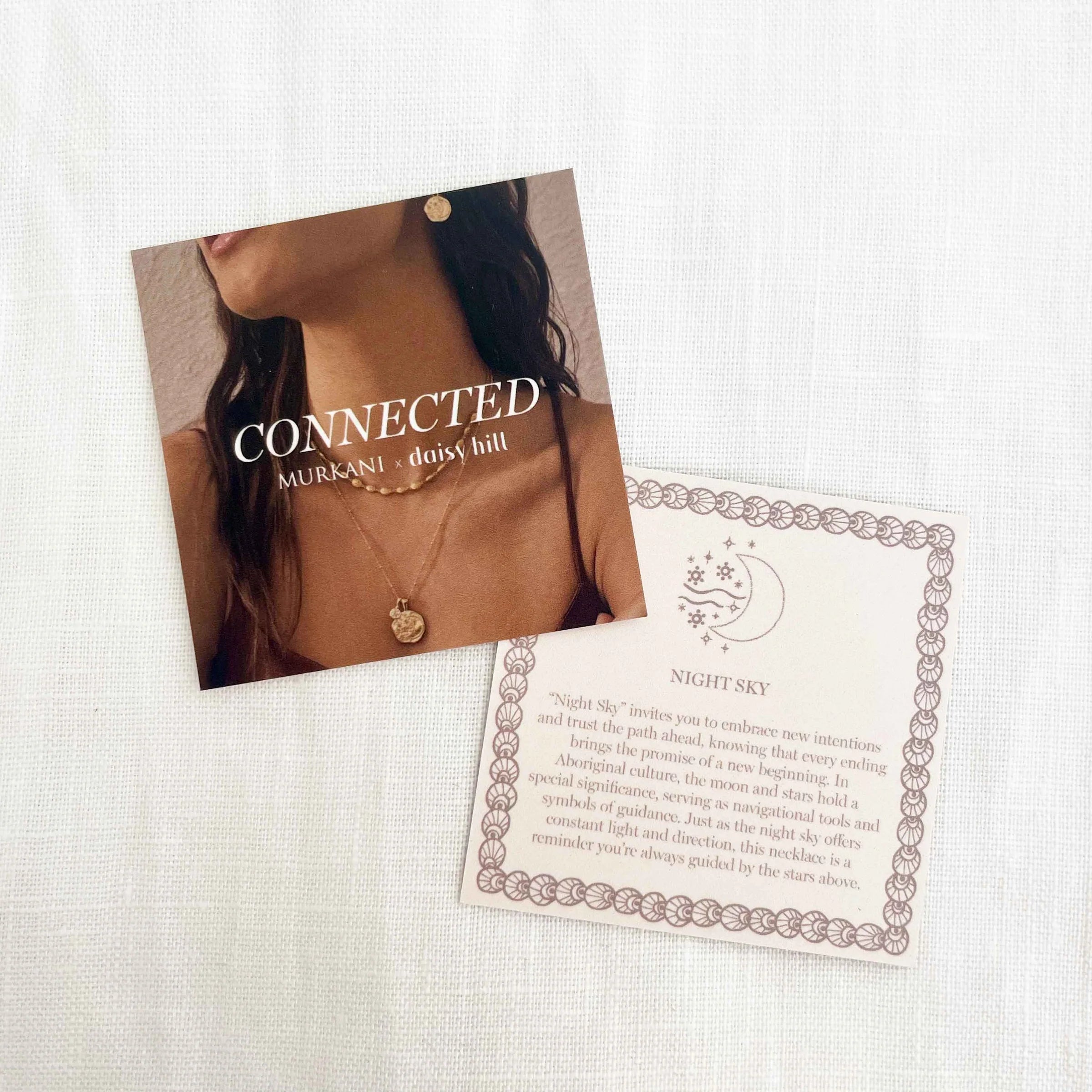 In collaboration with MURKANI, the CONNECTED Collection features artworks created by Aboriginal Artist, Daisy Hill. The "Night Sky" hoop earrings are a celebration of fresh starts and new horizons, inspired by the celestial maps of the moon and stars that have guided countless journeys through generations.