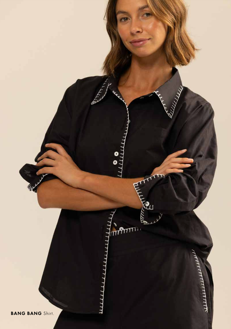 100% Cotton Shirt with White Quilt Stitch Detail & Contrast Buttons.
