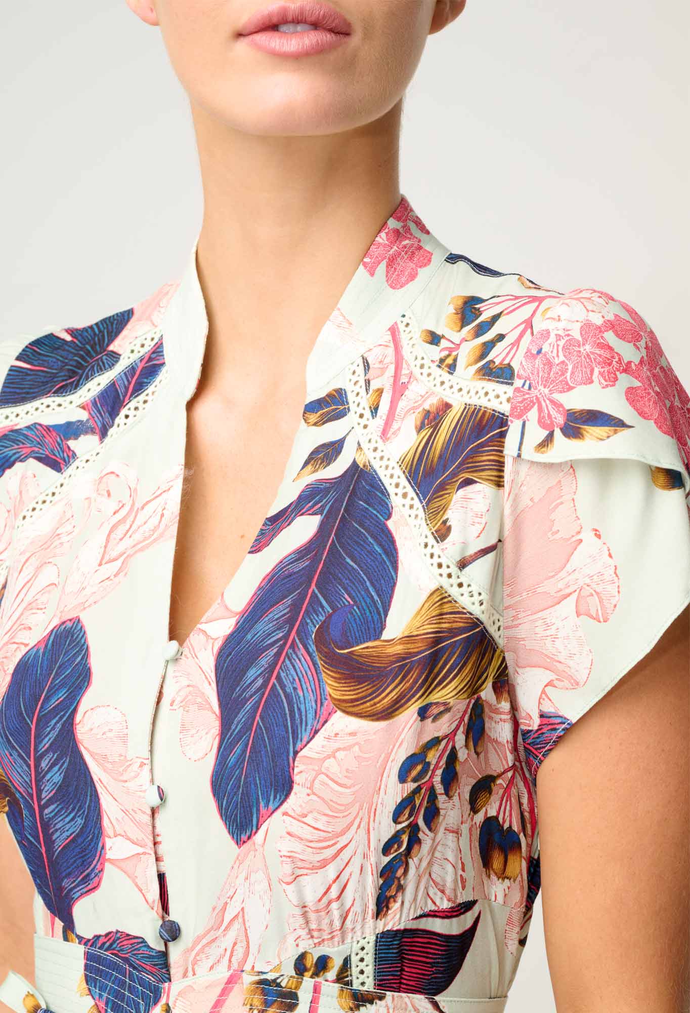Maysa Contrast Trim Yoke Viscose Faille Dress | Oasis Flora