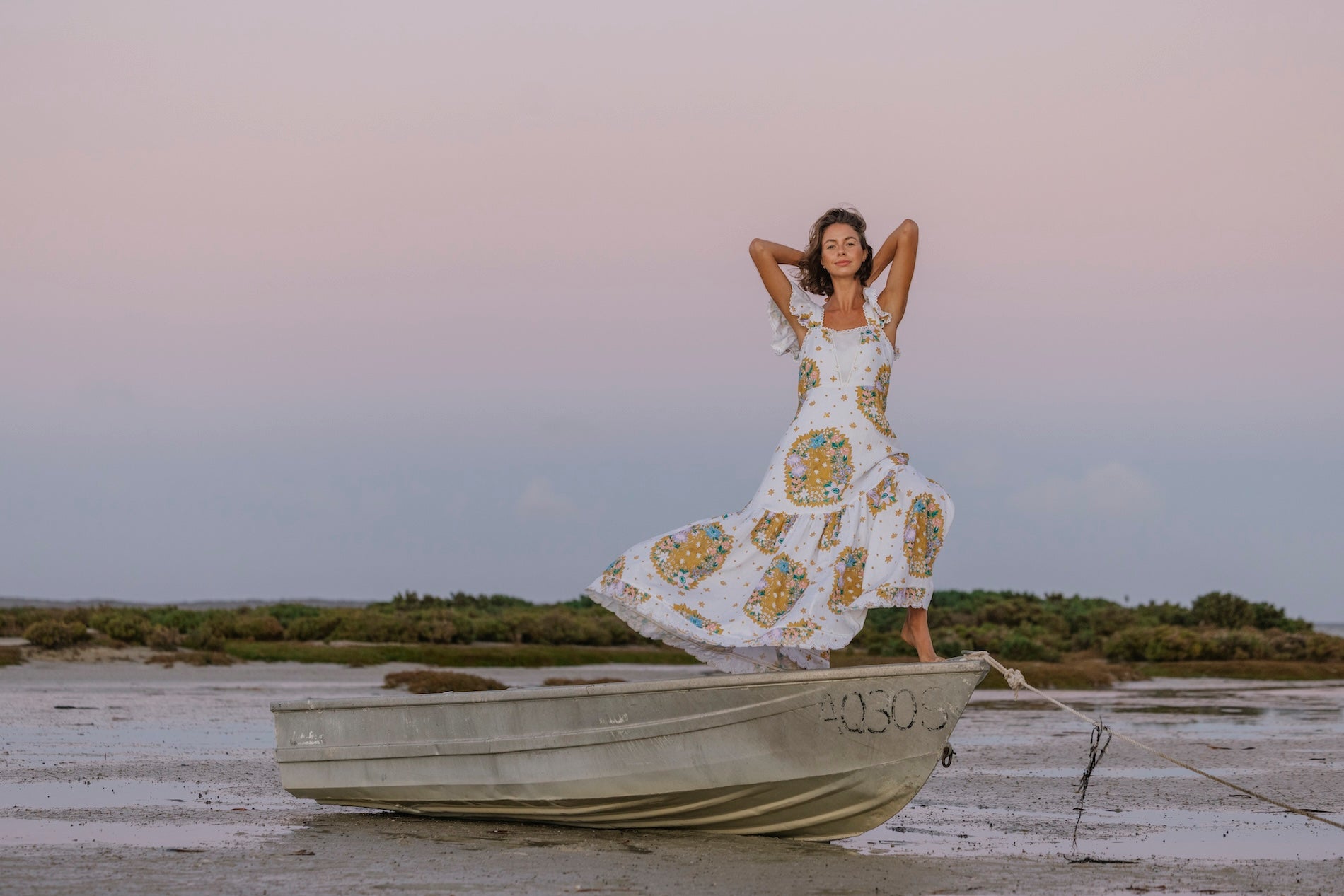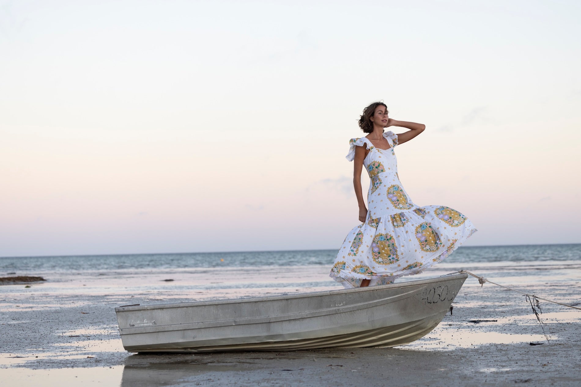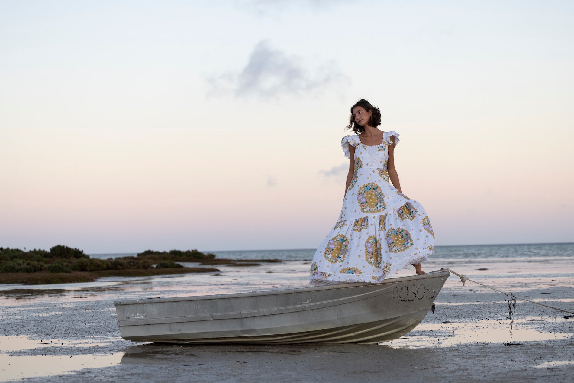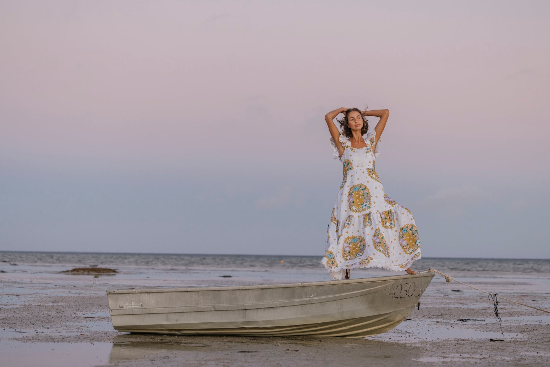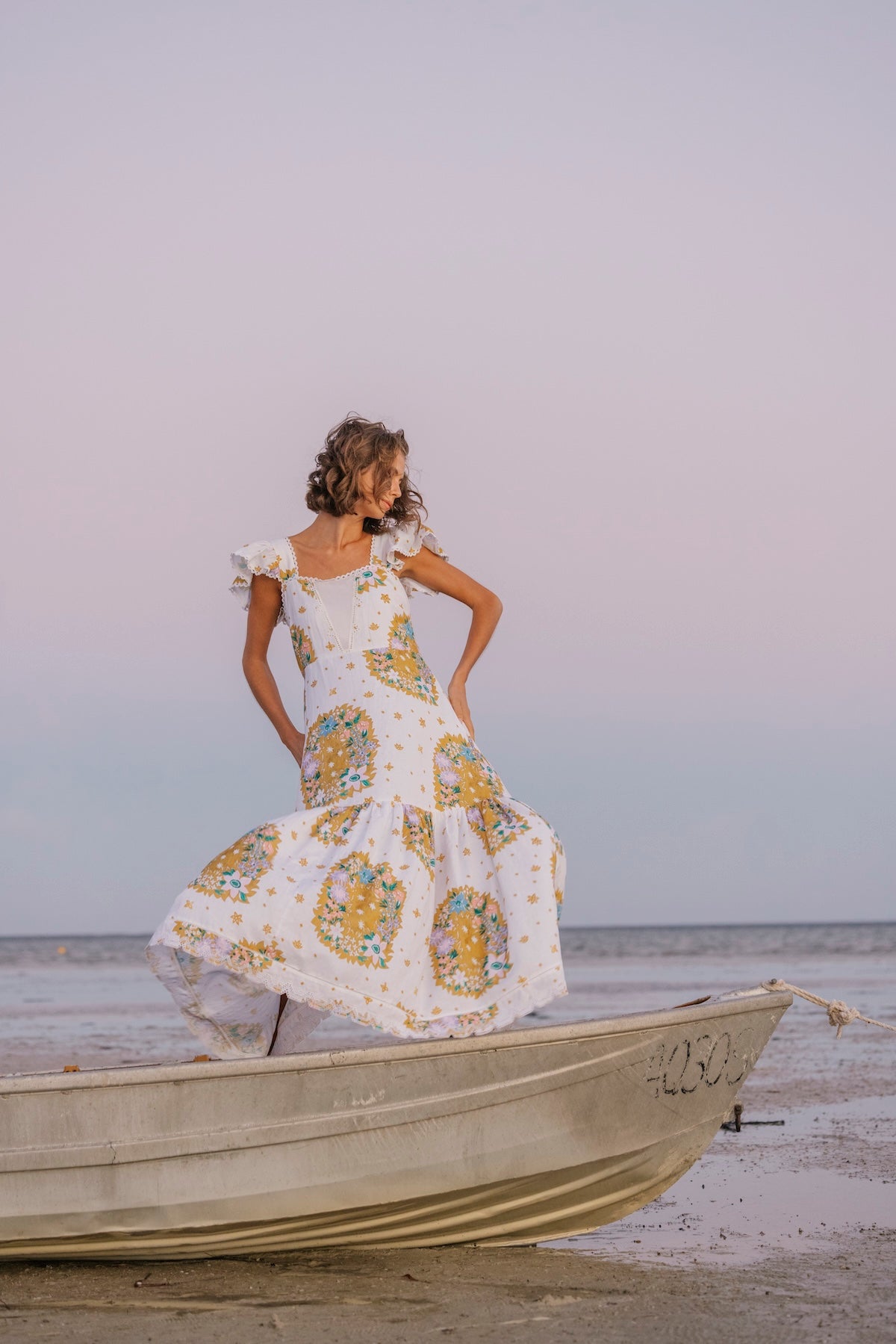 100% Cotton Poplin Maxi dress with Embroidery Details, Ruffle Sleeves, Shirred Back & Removable Waist Tie.