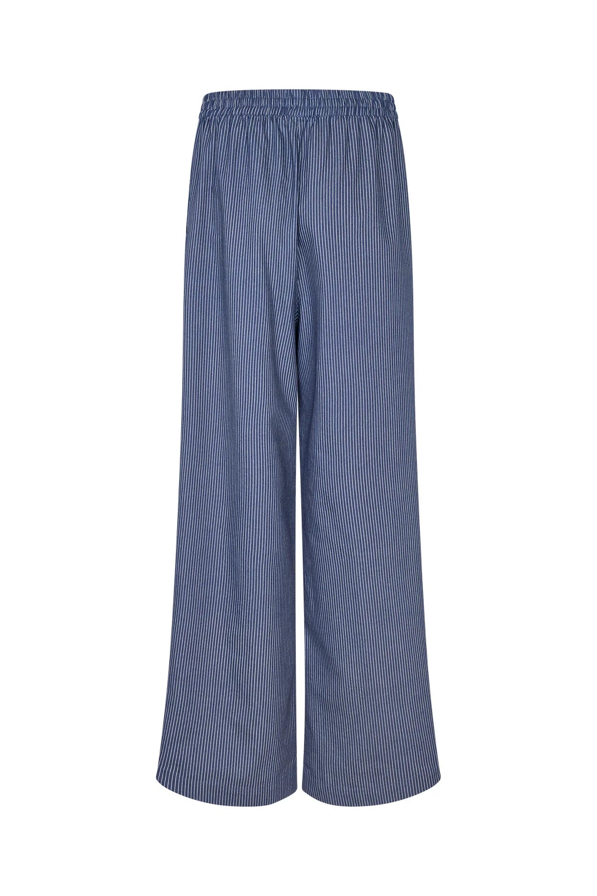 The LiamLL pants are designed to provide a sophisticated yet relaxed look that maintains its shape all day. They feature a timeless striped design in a classic blue color.