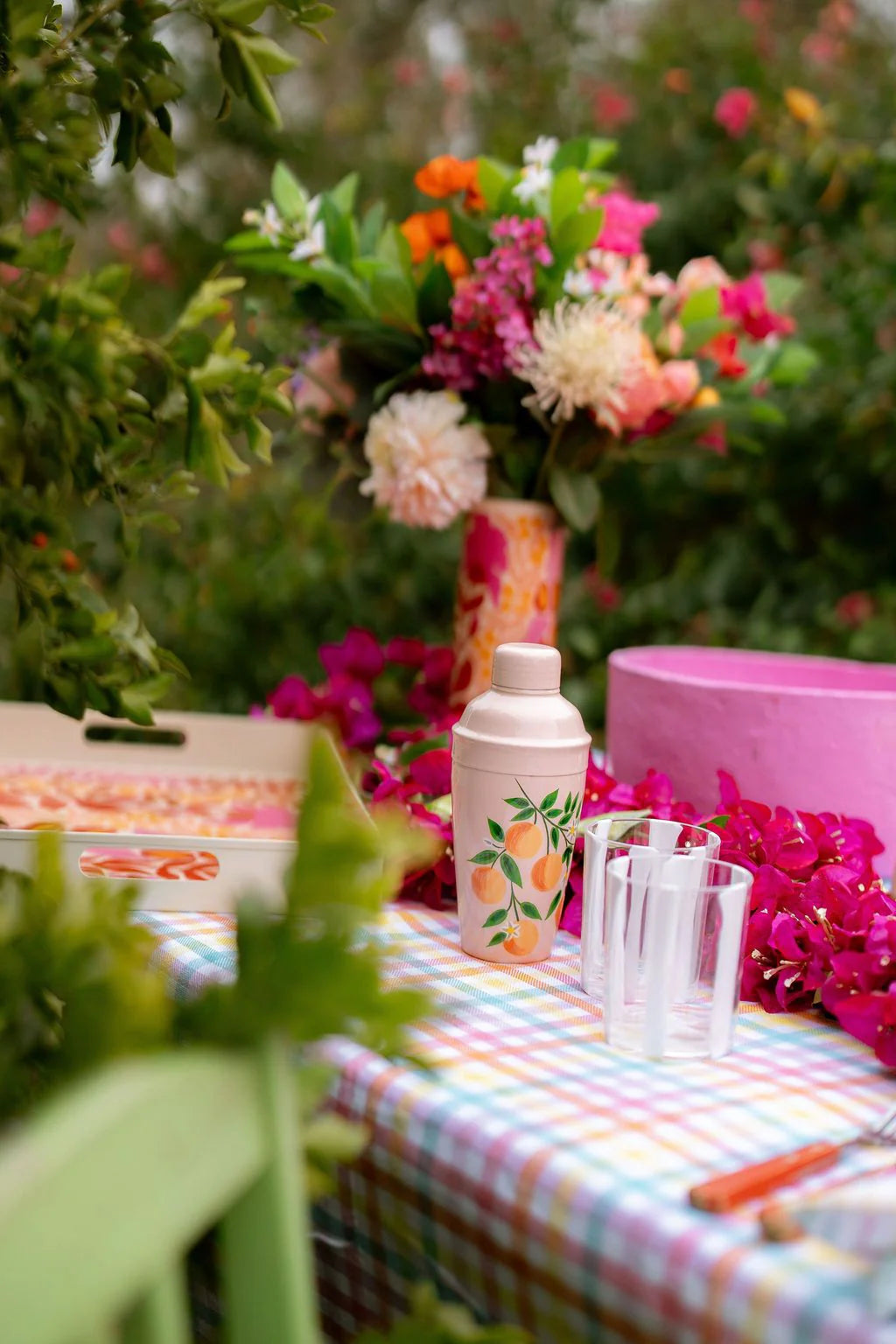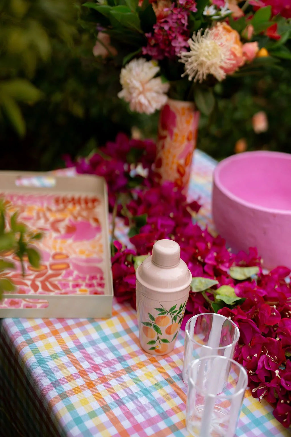 Shake up your cocktail game with this playful Citrus Cocktail Shaker! Crafted from durable stainless steel, it features a hand-painted, food-safe light peach background adorned with vibrant citrus fruits and lush foliage. Measuring 23x9cm, it’s the perfect size to mix your favourite drinks with a splash of fun and style. Cheers to bright flavours and colourful vibes!