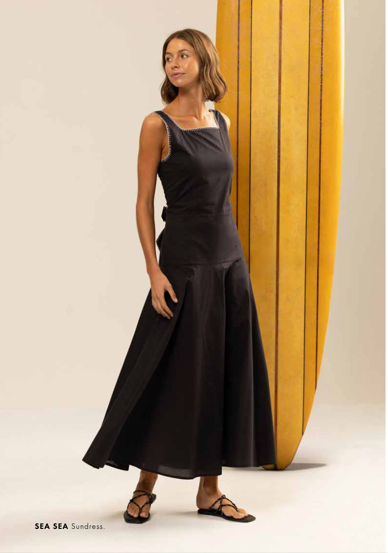 100% Cotton Sundress with White Quilt Stitch Detail, Side Pockets & Removable Waist Tie.