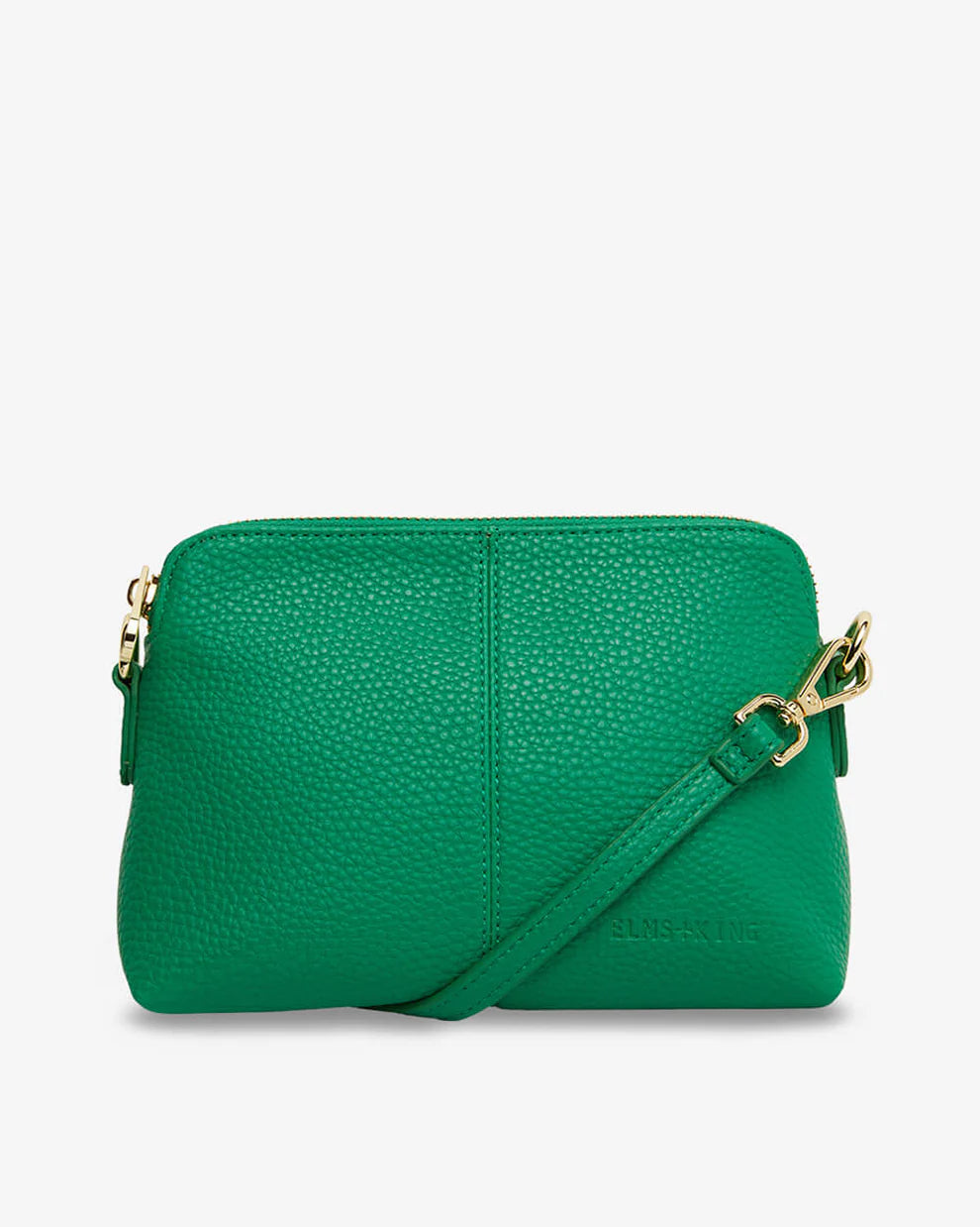 The Elms + King women's Burbank Crossbody Bag in Black offers compact functionality and the hands-free ease of a cross body. Made from premium polyurethane with 14-karat light gold-plated hardware, the Burbank interior features 3 credit cards, our signature blue & white gingham lining and ample depth for all your essentials. The crossbody features two strap options, one wide cotton webbing strap, adjustable to 140cm and a second narrow PU strap, also adjustable to 140cm.