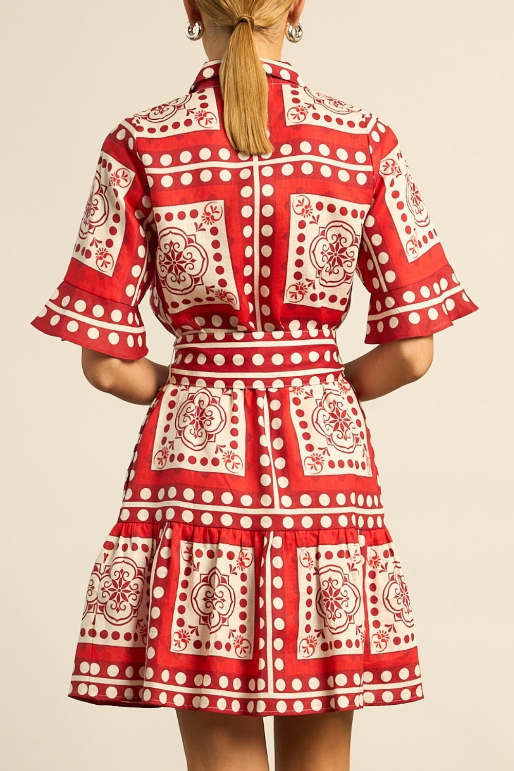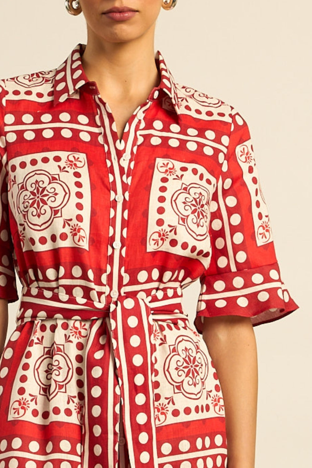 the submerge dress offers an easy-fitting silhouette finished with a tiered hem and softly fluted cuffs. a wide self-tie belt shapes the waist, while the distinguished scarf print, inspired by travels abroad, brings vibrance and individuality. designed for versatility, it’s a piece as suited to everyday wear as it is to resort escapes.