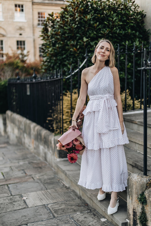 Amira One Shoulder Tie Viscose Faille Dress | Golden Medina
