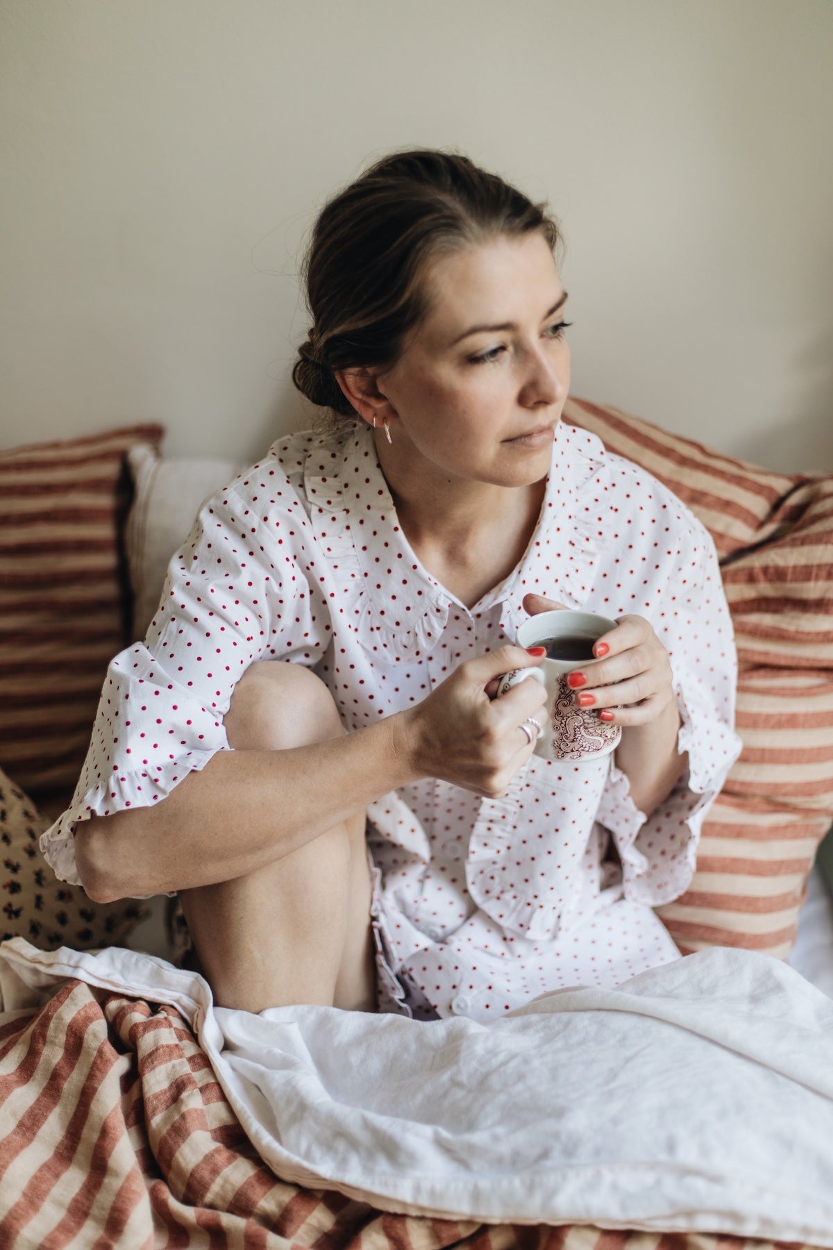 100% Cotton Pyjama Shirt & Matching Shorts with Patch Pockets & Frill Detail & Matching Bag.