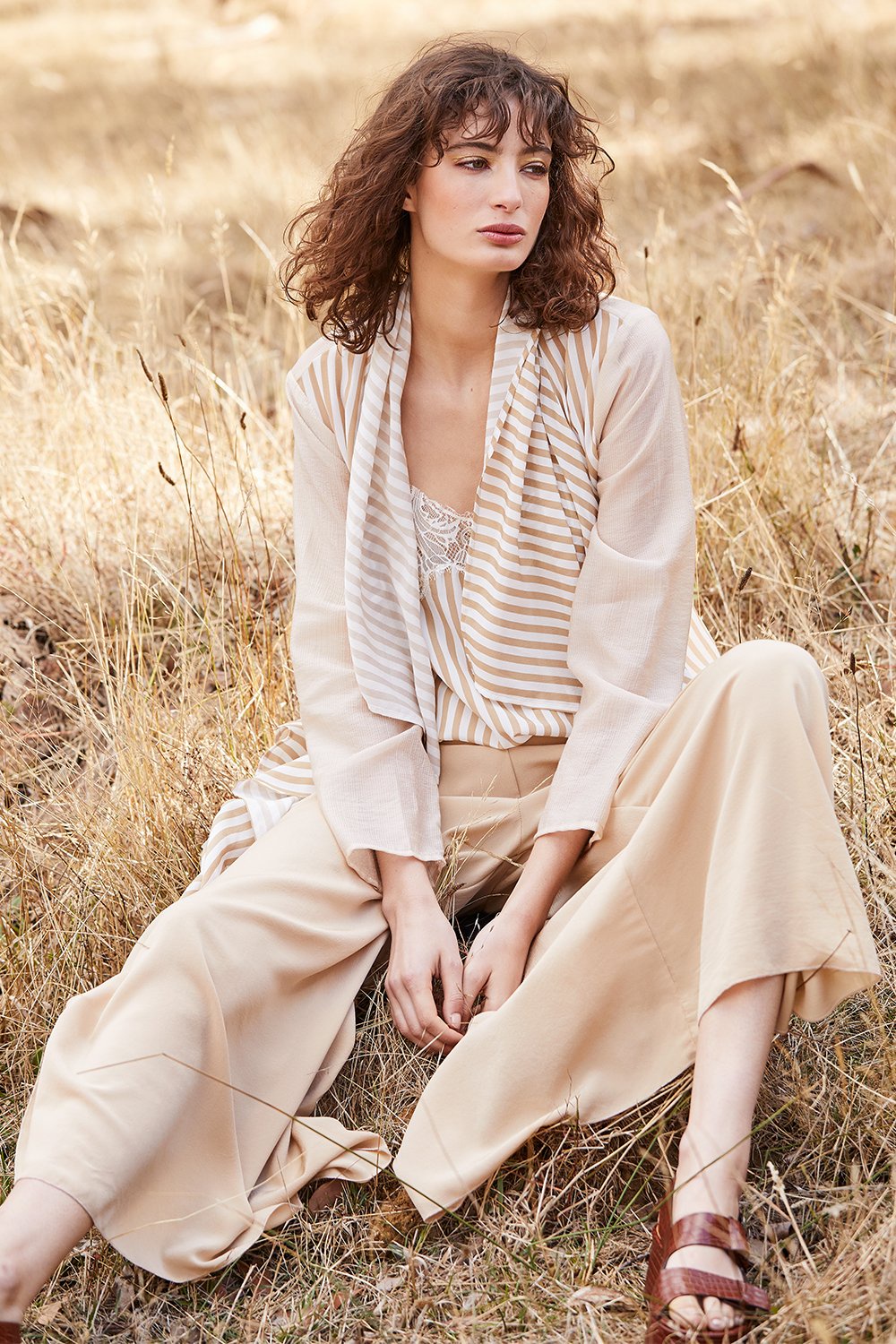 The McGee pant is an Betty and Lola favourite, these pants never go out of style. They are made from pure silk with a bell shaped hem and side slit to mid calf. You can wear them loose like a palazzo style or tie them up to the side and wear them like a harem pant. They are perfect with an oversized knit or a light silky singlet and sandals in summer.